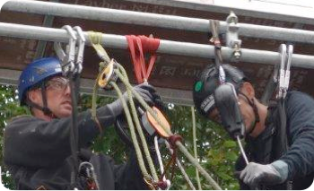 Höhenarbeiter mit vertikalen und horizontalen Zugangstechniken und Traversieren.